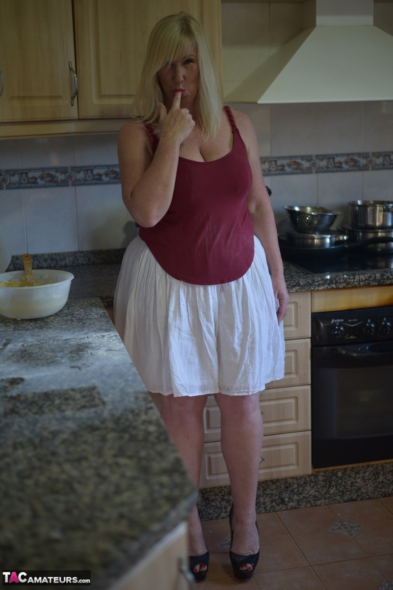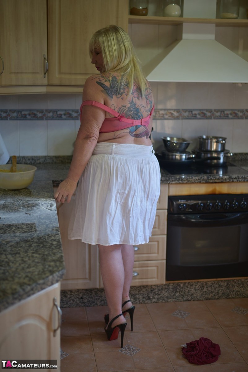 This blonde MILF isn't just baking a cake; she's stripping down to make it a feast for the eyes. Melody's got a tantalizing tattoo that adds to the excitement, and she's not shy about showing off her big tits while she's at it. It's a baking session that's sure to get your dick hard.
